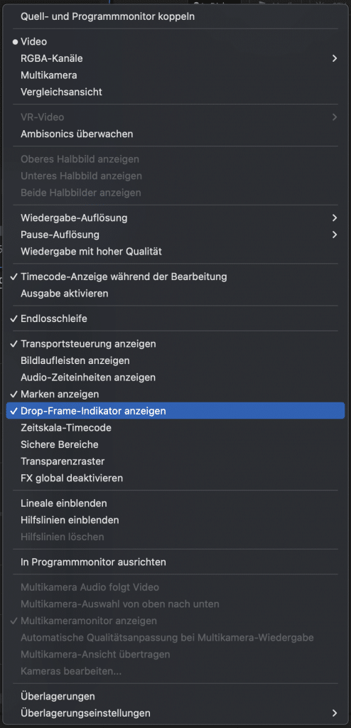 Im dann erscheinenden Menü aktivierst du den Drop Frame Indikator.